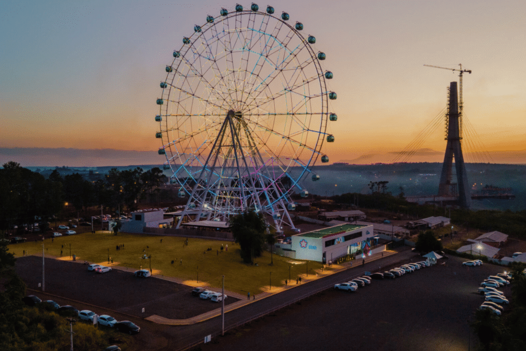 Do pôr do sol no Marco das 3 Fronteiras à vista da Roda-Gigante. Viva duas experiências com as paisagens mais inesquecíveis e encantadoras de Foz!
